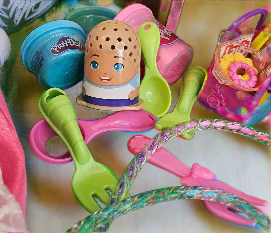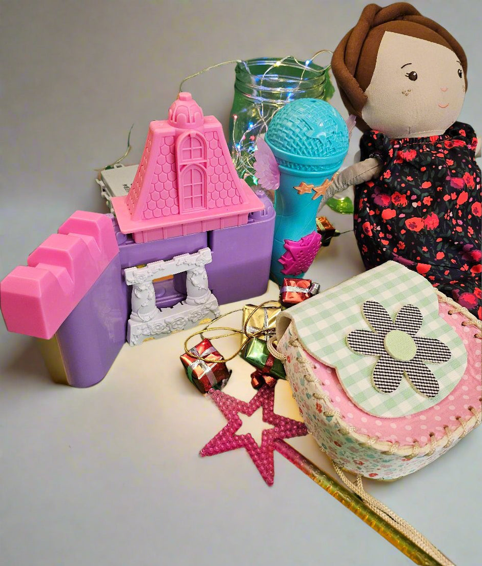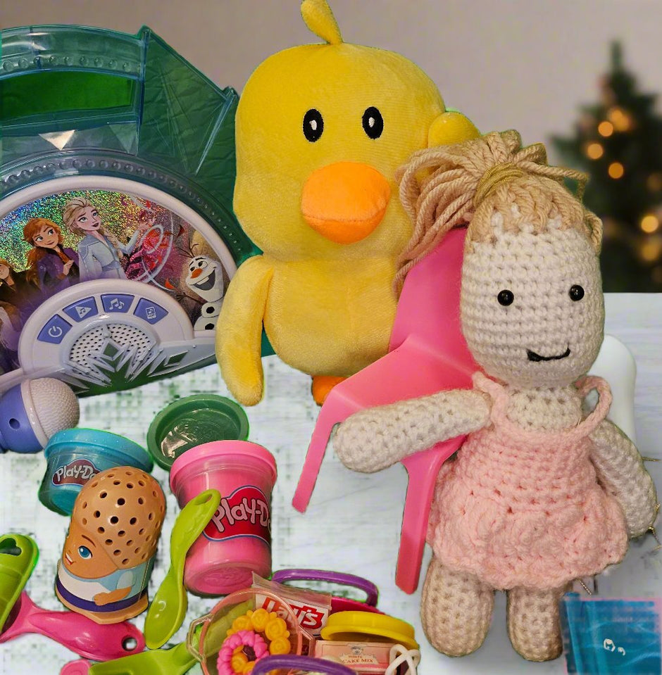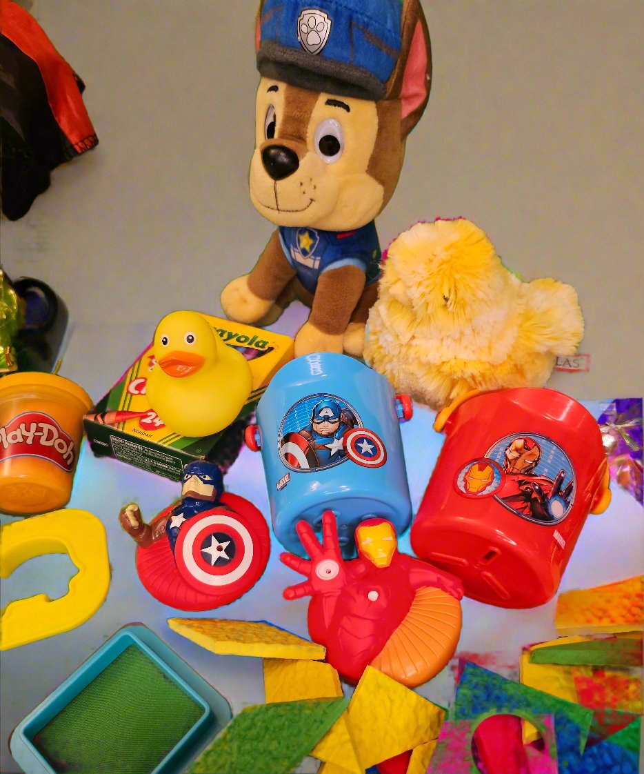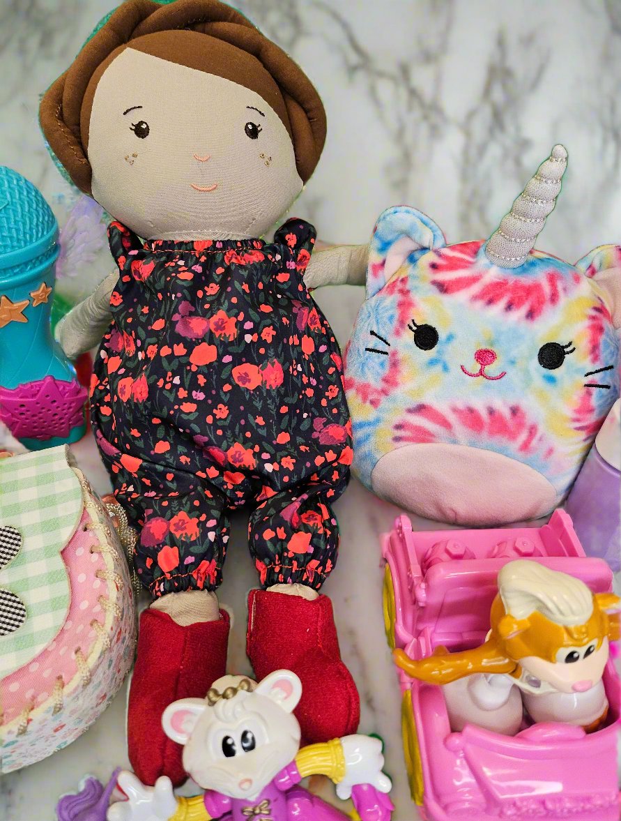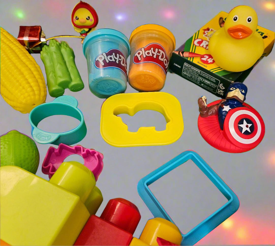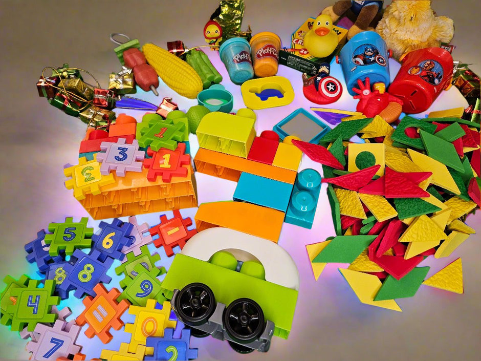 Preschool stockings include age-appropriate building blocks, two stuffies, books, crayons & playdoh, figurines and accessories. Santa's Gift believes in creating magical holiday moments without breaking the bank. Our pre-loved toys are carefully chosen and cleaned for a high-quality, joyful experience. Join us in making this season magical for your family—and the planet!