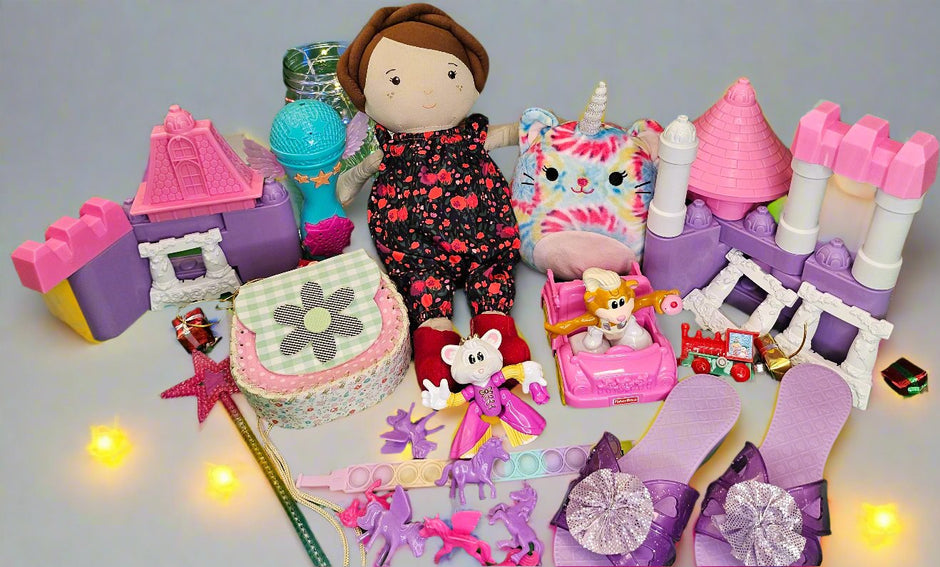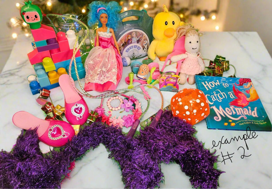 View examples of past mystery stockings. High-quality pre-loved toys are curated with care, sanitized and ready for Christmas morning.