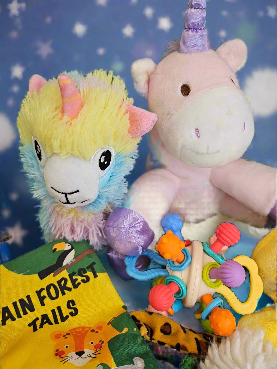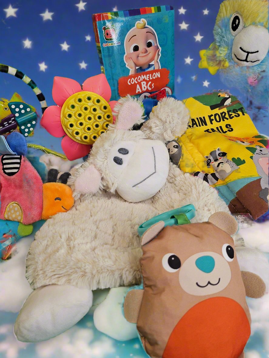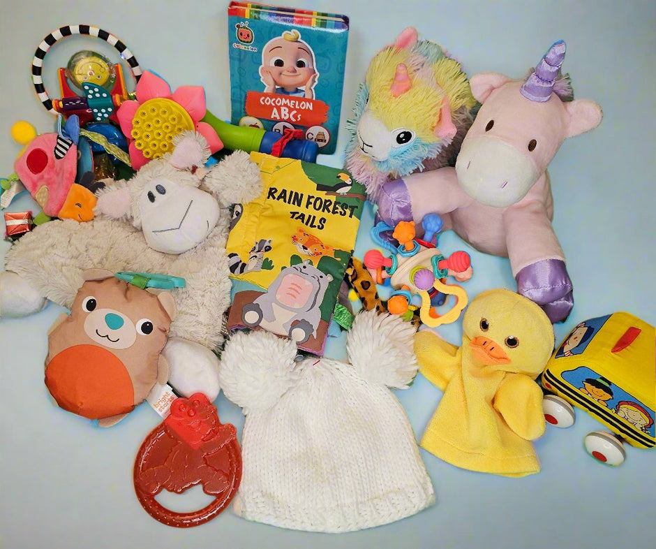View examples of past mystery stockings. High-quality pre-Loved toys are curated with care, and clean enough for immediate gummy drooling.